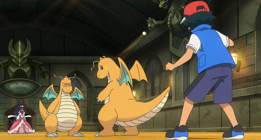 Da es Ash mit Lilias Drachen-Pokémon im Kampf zu tun bekommen wird, will er sein Dragoran einsetzen, dass er stolz Lilia zeigt. Die Drachen-Trainerin, die gut darin ist, die Gefühle der Drachen-Pokémon zu verstehen, erkennt auch sofort das herzensgute Wesen von Ashs Dragoran und freut sich darauf, gegen es anzutreten. Da an der Decke bereits die Rotom-Drohne schwebt, verlieren beide keine weitere Zeit und der Kampf, bei dem sie jeweils zwei Pokémon einsetzen dürfen, beginnt.