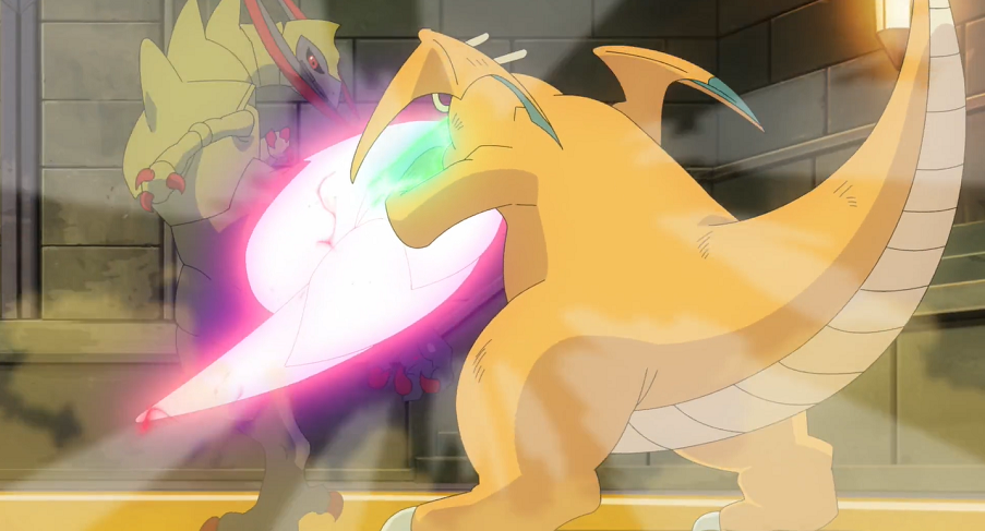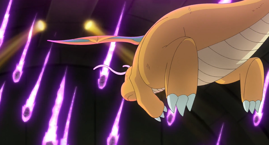 Erneut setzt Maxax Drachenpuls ein. Da Dragoran immer noch Orkan einsetzt, erzeugt es durch beide Attacken einen kräftigen Wirbel, der durch die offene Decke der Arena in den Himmel aufsteigt. Die entstehende Energie kann es so nutzen, um Draco Meteor einzusetzen. Lilias Pokémon kann dieser mächtigen Attacke nichts entgegensetzen und wird voll von den lilafarbenen, vom Himmel regnenden Kometen getroffen und besiegt.