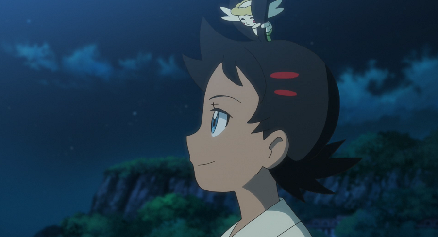Ash und Goh übernachten in dieser Nacht im Freien, wo Goh von seinem träumenden Chimpep, das ihm einen Schlag mit seinem Schlägel verpasst, aufgeweckt wird. Als er aufsteht bemerkt er, dass das Glas, in dem sie Flabébés alte Blume gelagert haben, offen auf dem Boden neben ihren Taschen liegt und die Blume daraus verschwunden ist. Goh kann sein Pokémon dabei beobachten, wie es bei Mondschein trainiert, um mit seiner alten Blume trotz des fehlenden Blütenblattes umgehen zu können - allerdings ohne Erfolg. Er versucht, seinem Pokémon Mut zu machen und kündigt an, dass sie gleich am nächsten Tag weitersuchen und dann auch eine Blume finden werden.