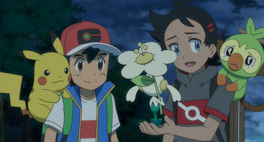 Am Abend sitzen Ash und Goh mit ihren Pokémon in einem Pokémon-Center, wo sie gemeinsam bei einem Essen stärken und sie später auch übernachten wollen. Dabei nehmen sie sich vor, irgendwoher anders eine neue weiße Blume für Flabébé aufzutreiben. Flabébé wirkt alles anderes als zuversichtlich. Gohs Chimpep kann das Feen-Pokémon jedoch erfolgreich aufmuntern.