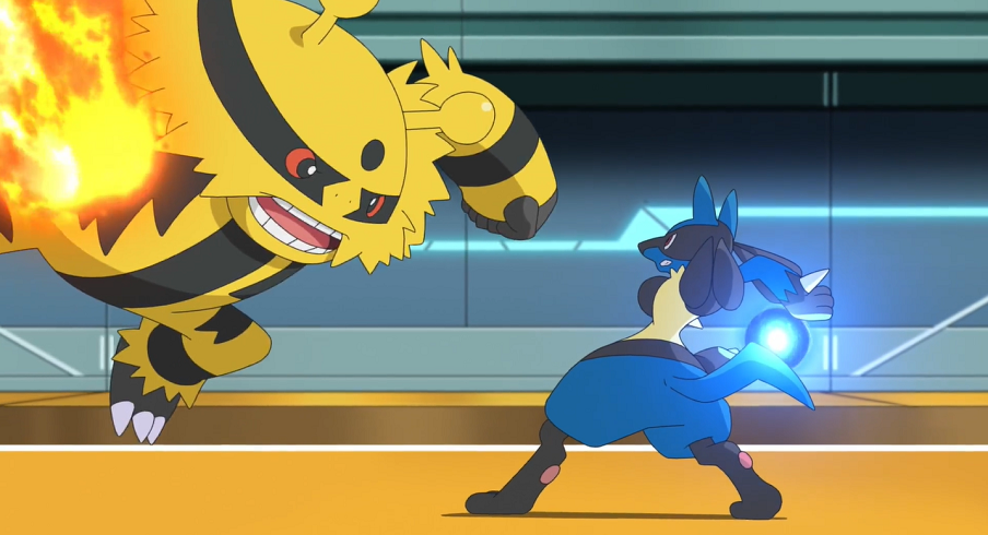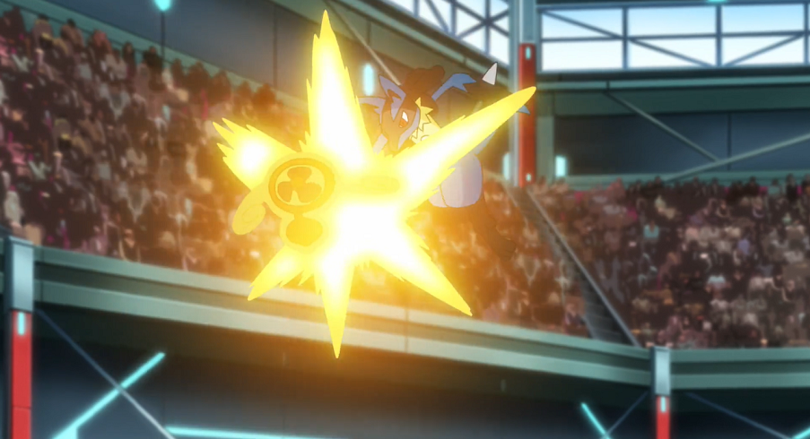 Der Arenaleiter schickt wieder Luxtra in den Kampf, das erneut Elektrofeld einsetzt. Beide Pokémon verlieren keine Zeit: Lucario setzt Aurasphäre ein, Luxtra Hochspannung. Als beide Pokémon in der Mitte des Feldes aufeinandertreffen, entsteht so eine heftige Explosion, an deren Anschluss zwar beide Pokémon erst einmal noch auf den Beinen stehen, doch dann gleichzeitig kampfunfähig zu Boden gehen.
