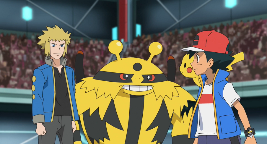 Pikachu signalisiert Ash, dass es bereit für ihre gemeinsame Z-Attacke ist. Daraufhin wirft ihm Ash seine Kappe zu und die beiden beginnen mit Hilfe des Z-Kristalls mit der Ausführung der Z-Attacke, auf die auch Volkner bereits sehr gespannt ist. Im Anschluss an die Choreografie der beiden setzt Pikachu Tausendfacher Donnerblitz ein und schickt so gewaltige bunte Donnerblitze auf Elevoltek. Volkner weist sein Pokémon an, die Attacke mit seiner Starthilfe-Fähigkeit zu absorbieren, was es zuerst versucht. Doch aufgrund der gewaltigen Stärke der Attacke kippt Elevoltek schließlich K.O. zu Boden. Das Stadion tobt und Ash sowie Pikachu freuen sich riesig über ihren Sieg. Nachdem die Rotom-Drohne Ash zum Sieger ausgerufen hat, verkündet sie sogleich dessen aktualisiertes Ranking: Durch den Sieg klettert er nun auf Rang 64.