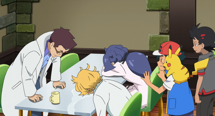 Am nächsten Morgen sind Professor Kirsch, Christin und René wieder sehr betrübt, als Ash und Goh den Essensraum betreten. Professor Kirsch berichtet, dass diesmal die von den beiden gesammelten Daten aus der Galar-Region gelöscht worden seien. Er entschuldigt sich bei ihnen. Ash aber lehnt die Entschuldigung ab und lenkt den Fokus sofort auf den Übeltäter, woraufhin der Professor, Christin und René sich sofort motiviert aufmachen, die Sicherheit erneut zu erhöhen.