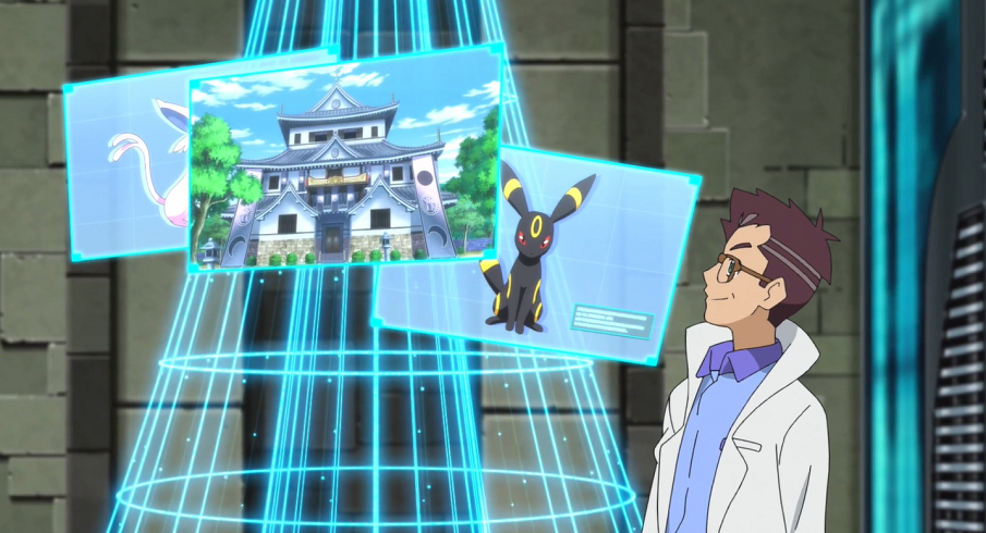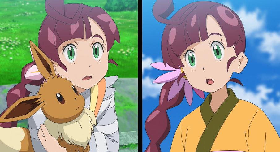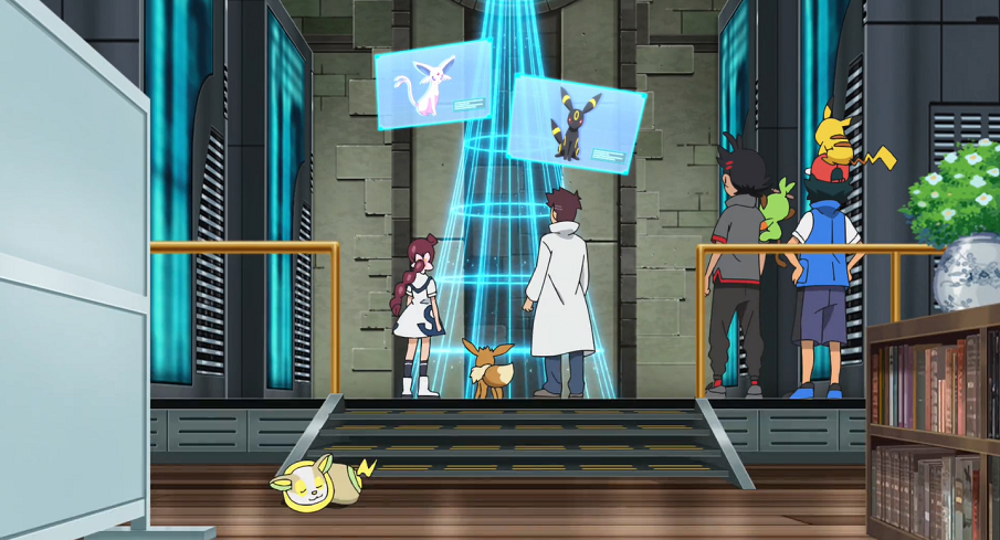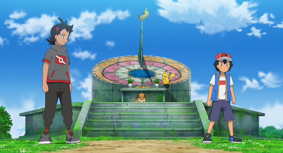 Ash und Goh suchen gemeinsam bei der Sonnenuhr auf dem Hügel mit Pikachu, Chimpep und Evoli nach Chloe. Plötzlich bekommt Evoli eine Eingebung und sie sieht den Baum, in dem Chloe versteckt gehalten wird, vor ihrem inneren Auge. Sofort eilt sie, gefolgt von Ash, Goh und den beiden anderen Pokémon, los.