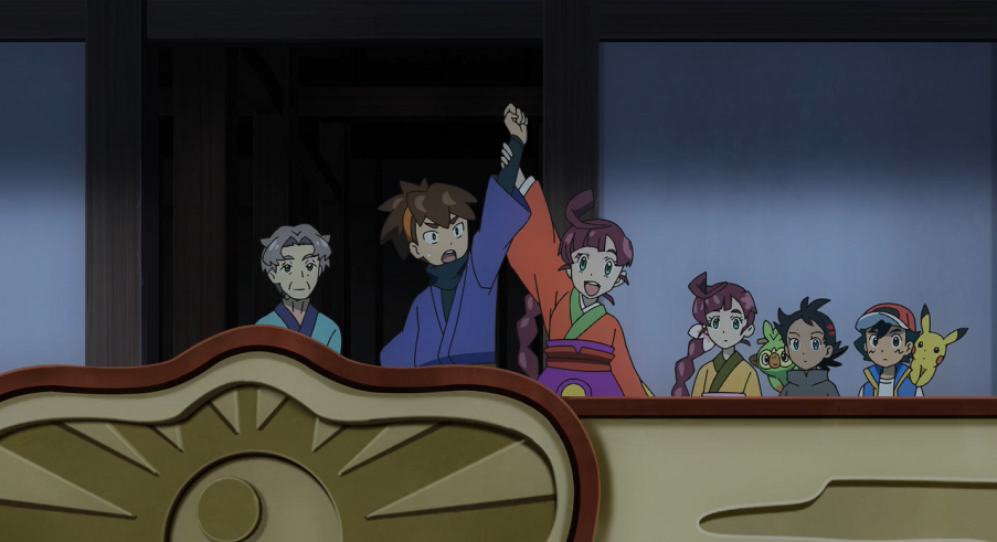 Das Fest beginnt und Ash und Goh sind, wie zahlreiche andere Besucher auch, gespannt auf Solei, die jeden Augenblick mit Psiana und Nachtara auf den Balkon des Schlosses treten will. Während alle noch warten, eilt Chloes Evoli zu Ash und Goh und leitet sie an, ihm zu folgen. Kurz darauf betritt Solei den Balkon.
