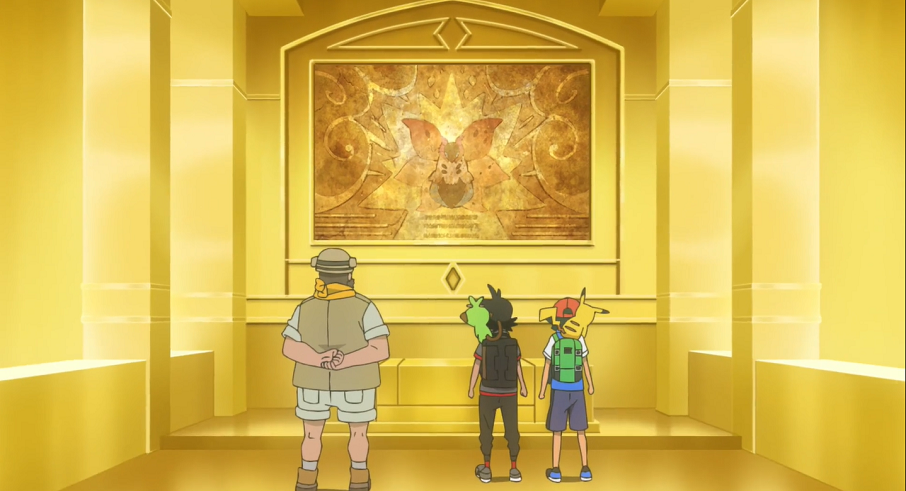 Als sie im Wüstenresort ankommen, begeben sie sich sofort zu den Ruinen. In diesen finden sie auch schnell wieder den verborgenen goldenen Raum, der damals im Kampf gegen Golgantes erst zum Vorschein gekommen ist. Dort treffen sie auf den Ausgrabungsleiter, den sie bereits vom letzten Mal kennen. Als sie sich bei diesem nach Ramoth erkundigen, erzählt er ihnen, dass in letzter Zeit Pokémon-Jäger aktiv waren, welche die Pokémon in der Umgebung mit grausamen Methoden gefangen hätten. Deshalb scheine Ramoth sich nicht mehr sehen zu lassen. Allerdings, so berichtet er weiter, haben sein Team und er eine Entdeckung zu Ramoth gemacht.