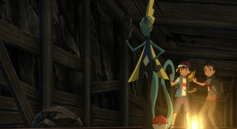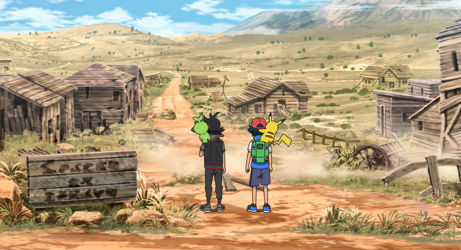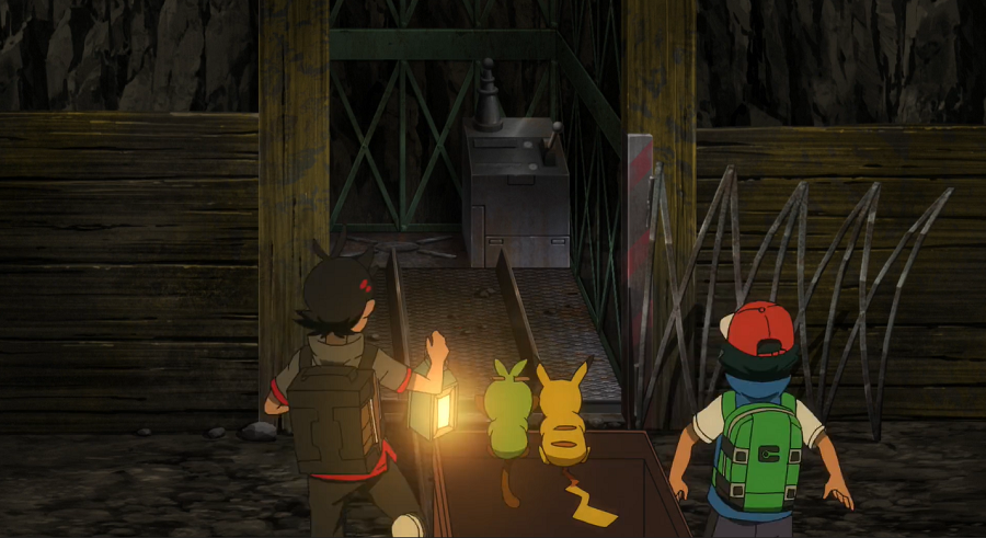 Ash und Goh machen sich auf zu der verlassenen Stadt. Auf den ersten Blick scheint es dort allerdings nichts von Interesse zu geben. Neben dem großen Vulkan im Hintergrund fällt ihnen nur der Eingang zu einer Goldgräbermine auf. Gemeinsam beschließen sie, sich in dieser umzusehen. Die beiden schnappen sich eine Laterne und machen sich, den Schienen folgend, auf den Weg in das Innere. Dort treffen sie schnell auf ein angriffslustiges Kiesling, das sich ihnen in den Weg stellt. Goh setzt Intelleon ein, welches das Kiesling mit seinem Präzisionsschuss ausknockt, sodass er es ohne Probleme fangen kann. Allerdings müssen sie feststellen, dass bereits eine Horde Kiesling nachrückt und sie attackiert. Reaktionsschnell flüchten sich Ash, Goh und ihre Pokémon in eine Lore und können so für Erste entkommen. Allerdings rasen sie anschließend mit hoher Geschwindigkeit auf das Ende der Schienen zu, das direkt in einen Abgrund führen würde. Sie bemerken jedoch eine Weiche zuvor, die Intelleon auf Gohs Anweisung hin mit seinem Präzisionsschuss gerade noch rechtzeitig umstellen kann.