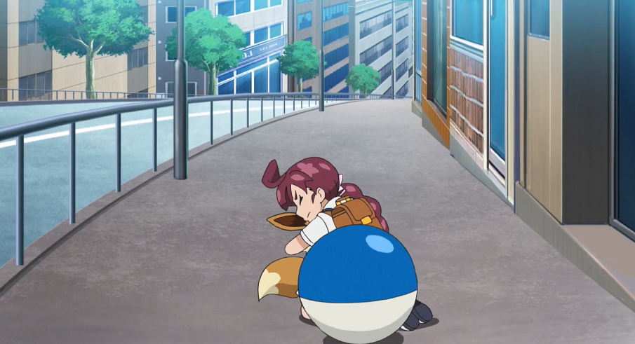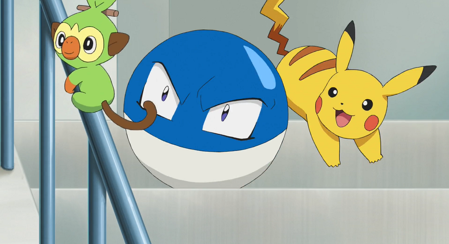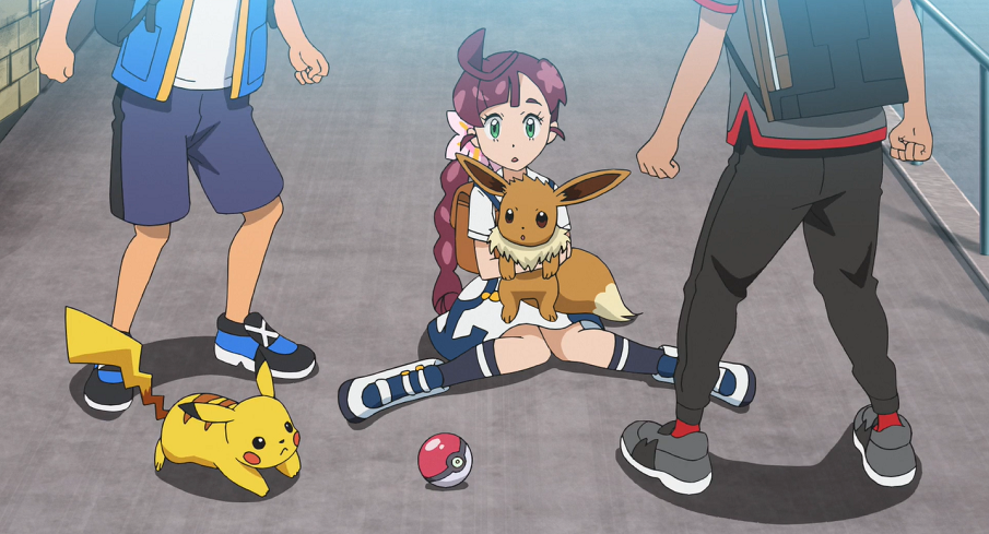 Chloe ist mit ihrem Evoli auf dem Rückweg von der Schule durch die Stadt, als hinter ihnen auf einmal Ash und Goh auftauchen, die ein Schillerndes Voltobal verfolgen, das direkt auf Chloe und Evoli zurollt und den beiden so einen Schrecken einjagt. Goh gelingt es, das besondere Pokémon mit einem geübten Wurf zu fangen.