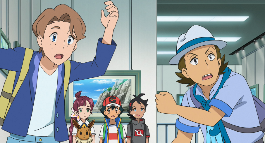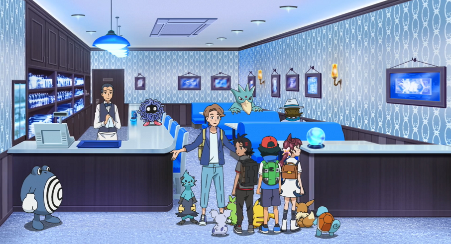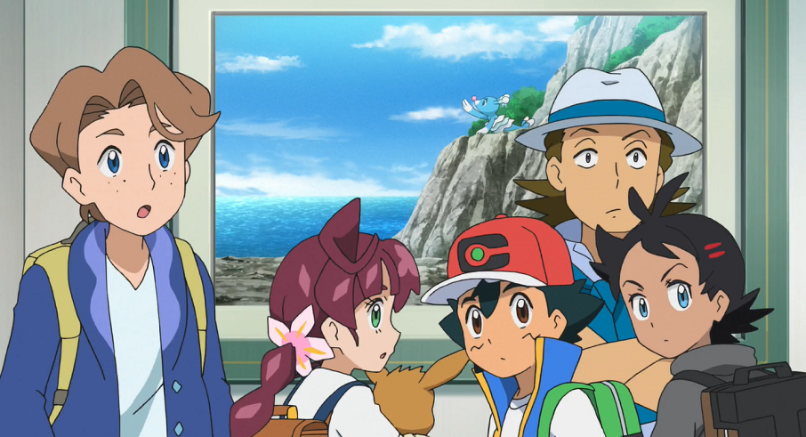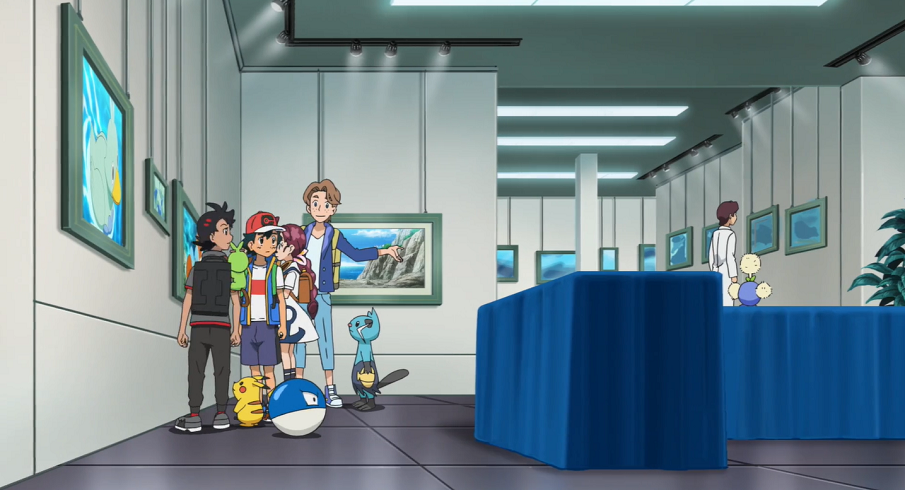 Die Gruppe ist beeindruckt von den Fotos mit blauen Pokémon, die sie bei der Ausstellung ansehen können. Als sich Gohs Voltobal gemeinsam mit Chimpep und Pikachu ein Foto eines anderen Schillernden Voltobals anschaut, beginnen die drei Pokémon merkwürdig mit Voltobal auf und ab zu hüpfen. Goro erklärt Ash, Chloe und Goh, bevor diese die Pokémon unterbrechen können, dass sie sich nicht einmischen und die Pokémon den Moment genießen lassen sollten. An einem Bild mit einem Marikeck zeigt er ihnen auf, wie solche Bilder mit einiger Fantasie zum Beispiel auf ihn wirken und erzählt ihnen seine ausgedachte Geschichte dazu.