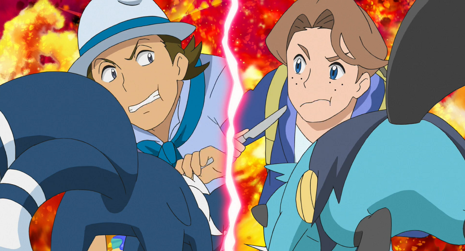 Nachdem die beiden einen Platz zum Kämpfen gefunden haben, vereinbaren sie, dass der Verlierer sofort seine Reise beendet und nach Kalos zurückkehren müsse.