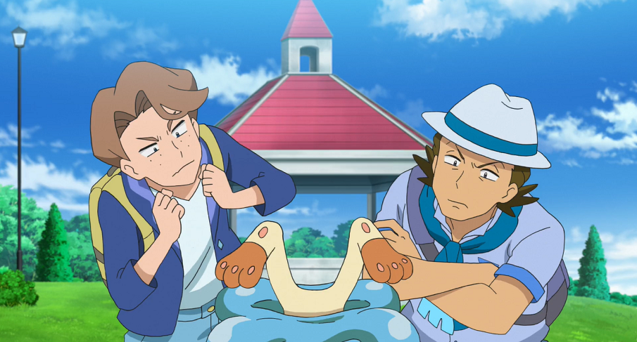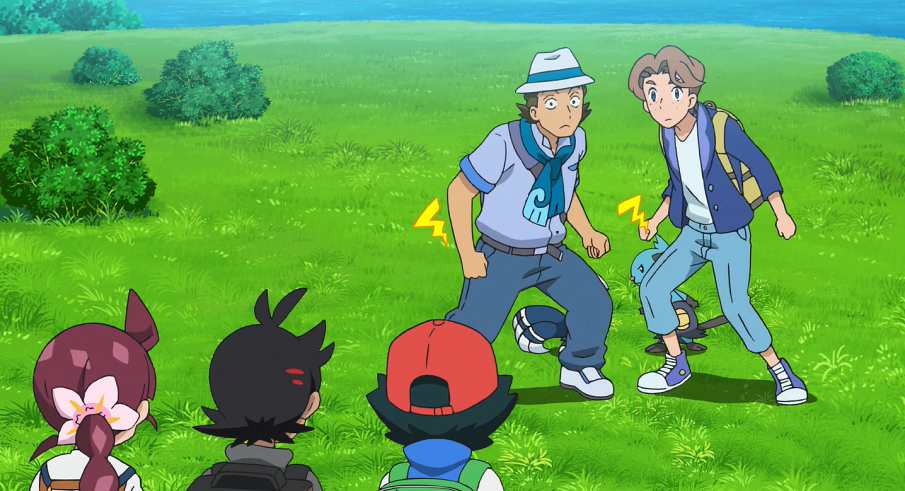 Im Park beschwert sich Goro bei Ash, Chloe und Goh über seinen Pokémaniac-Konkurrenten. Schnell möchte er jedoch den Ärger vergessen und sich davon nicht seine Reise kaputt machen lassen. Gemeinsam blicken sie auf ihr nächstes Ziel.