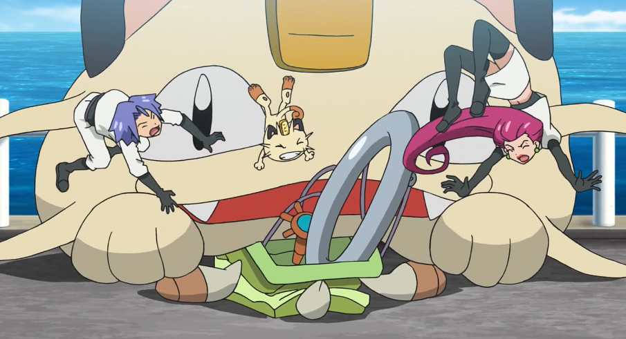 Team Rocket kümmert sich derweil in einer Seitengasse um Woingenau, das der Trubel um es selbst erschreckt hat. Jessie, James und Mauzi können das nicht so richtig nachvollziehen, doch Woingenau schnappt sich seinen Pokéball, verschwindet darin und macht damit unmissverständlich klar, dass sich das Team etwas ohne es überlegen muss.