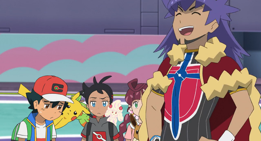 Chloe, Goh und Roy haben sich auf der Tribüne platziert, um von dort den Kampf zu verfolgen. Delion stellt sich als Schiedsrichter zur Verfügung. Beide treten jeweils mit einem Pokémon an. Während Ash Pikachu in den Kampf schickt, entscheidet sich Papella für Pokusan.
