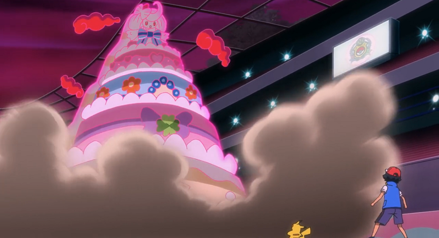 Papella ruft ihr Pokusan nun zurück, um dann den Pokéball mit Hilfe ihres Dynamax-Bandes zu vergrößern und Gigadynamax-Pokusan zurück in den Kampf zu schicken. Sofort setzt es Giga-Lichtblick ein, wodurch Sahne vom Himmel auf Pikachu herabfällt. Zuerst scheint Pikachu geschlagen, doch auf einmal beginnt auch dieses zu Papellas großem Erstaunen zu wachsen und scheint ebenfalls seine Gigadynamax-Form anzunehmen. Genüsslich verspeist es die restliche herabfallende Sahne. Als Ash es allerdings anweist, Giga-Blitzhagel einzusetzen, tut sich nichts. Delion begreift die Situation und erklärt, dass Pikachu nicht gigadynamaximiert, sondern lediglich durch die äußerst kalorienhaltige Sahne so dick geworden und gewachsen sei. Papella beendet daraufhin den Kampf.