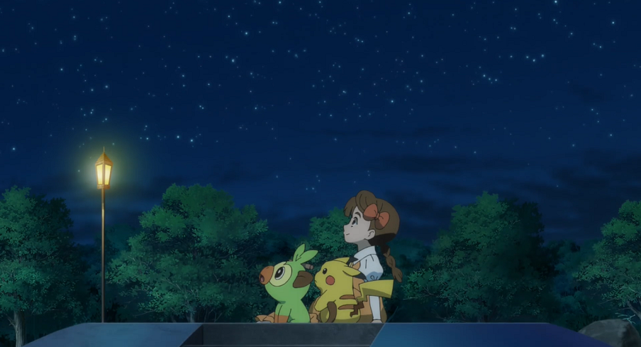 Die Mutter von Tiara taucht nun auf. Ihre Tochter erzählt ihr, dass sie mit Ash und Goh die Sterne anschaue und bittet sie darum, noch etwas draußen bleiben zu dürfen. Die Mutter willigt ein.