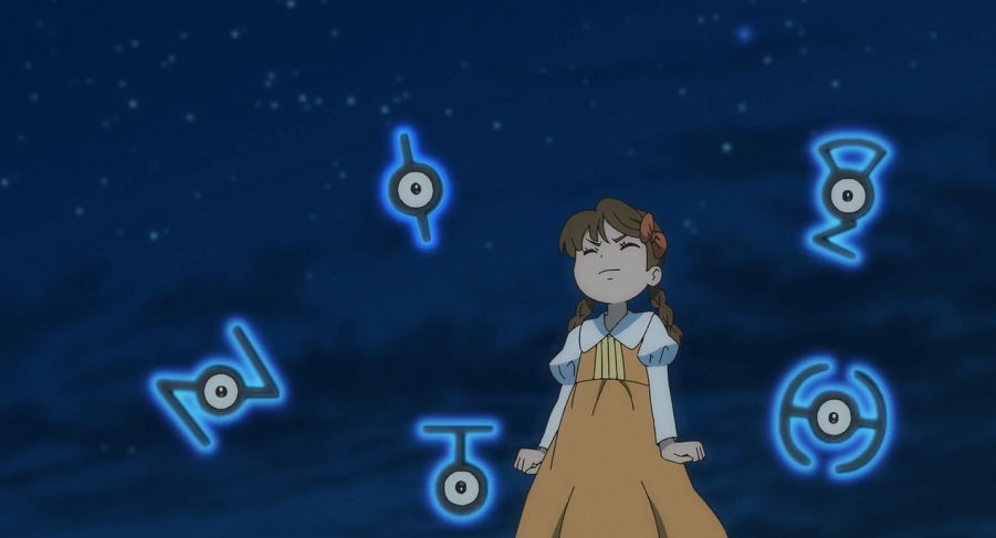 Im Museum macht sich Goh auf die Suche. Ashs Pikachu riecht derweil etwas Bekanntes und springt daraufhin in eine Menge von Museumsbesucher und dort direkt in die Arme von Cynthia. Pikachu freut sich sehr, Cynthia wiederzusehen. Auch Cynthia ist sehr darüber erfreut, auf Pikachu und Ash zu treffen. Sie erklärt, dass sie gehört habe, dass er an den Weltmeisterschaften teilnehme. Entschlossen erklärt Ash daraufhin, dass er vorhabe, eines Tages wie sie in die Top 8 zu kommen. Goh ist ebenfalls begeistert, Cynthia einmal treffen zu können und stellt sich ihr vor. Cynthia erklärt auf seine Nachfrage, dass Archäologie ihre Leidenschaft sei und sie für Nachforschungen an diesem Ort sei. Ash und Goh wiederum berichten Cynthia von dem Phänomen der dauerhaften Nacht in der Stadt, dem sie auf der Spur seien. Goh hat nun auch gefunden, was er im Museum gesucht hat: an einer Wand hängt eine Abbildung mit allen 28 Formen von Icognito. Er vermutet, dass Tiara ein Icognito I gesehen habe, was am besten zu ihrer Beschreibung passen würde. Gohs Pokédex zufolge, den sie daraufhin zu Rate ziehen, können zwei oder mehr Icognito eine eigentümliche Kraft auslösen. Cynthia, die sich ebenfalls mit Icognito beschäftigt, informiert sie darüber, dass Icognito zwar häufig in der Nähe von Ruinen zu finden, darüber hinaus jedoch noch ein großes Mysterium seien. Sie bittet Ash und Goh, sie komplett über die Geschehnisse zu informieren.