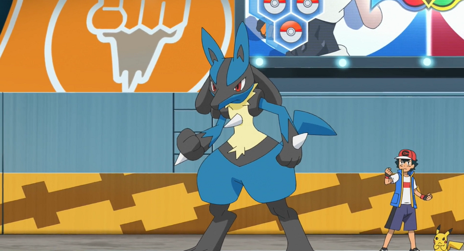 Ash freut sich, dass Delion sich den Kampf anschaut, was ihn zusätzlich motiviert. Doch genauso wie er will auch Saida eines Tages gegen aktuellen Weltmeisterschafts-Monarchen Delion antreten. Machomei mit Stärke und Lucario mit Gegenschlag setzen ihren Kampf fort.