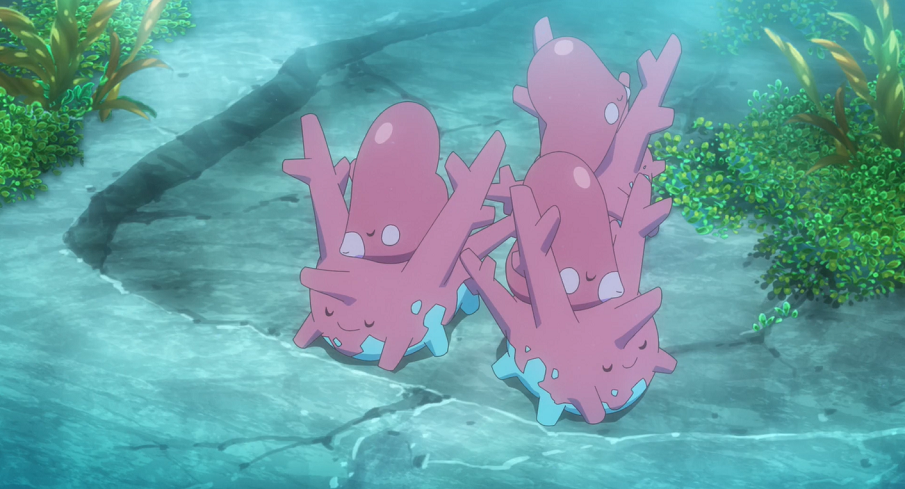 Schließlich können sich Ash und Goh bis auf den Grund zum U-Boot vorkämpfen und in dessen Inneren umschauen. Dort treffen sie wieder auf einige Wasser-Pokémon, und diesmal auch, zu Gohs Freude, auf ein Seemon. Mit seinem Freudenschrei erschreckt Goh dieses jedoch, sodass es schnell davonschwimmt. Goh und Ash folgen ihm, verlieren es jedoch aus den Augen. Das Seemon schwimmt zur gleichen Zeit aus dem U-Boot heraus und landet dabei direkt vor einem Tohaido. Eilig flieht es vor dem Brutal-Pokémon zurück in das Wrack.