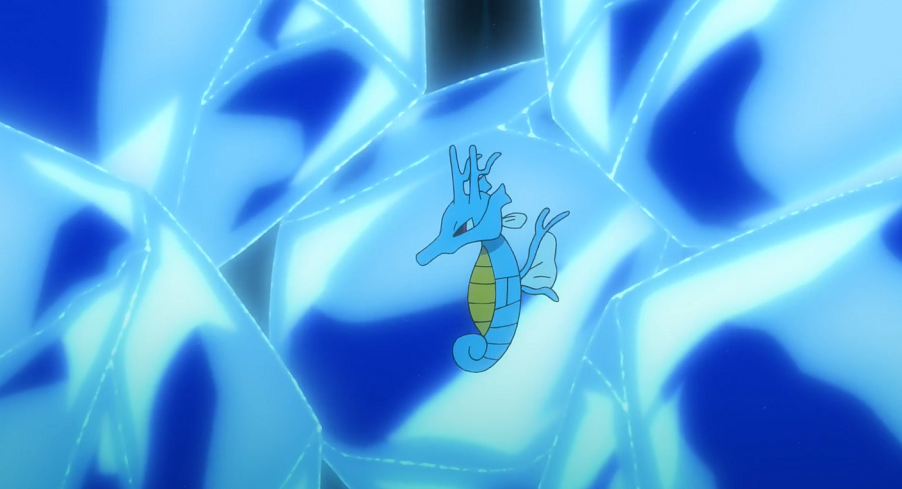 Als sie die Höhle verlassen, werden sie direkt von einer Strömung nach oben gerissen. Zugleich ist der Sauerstoff in Gohs Flasche erschöpft. Er reagiert schnell und ruft Seedraking aus dessen Pokéball. Sowohl er als auch Ash klammern sich beide an das Drachen-Pokémon, das mit seinem Feuerodem den nötigen Auftrieb erzeugt. Auf dem Weg zurück an die Wasseroberfläche kann Goh noch erkennen, wie das Seemon sich glücklich mit seiner Drachenhaut durch eine Scheibe aus dem Inneren des U-Boot-Wracks von ihnen verabschiedet.