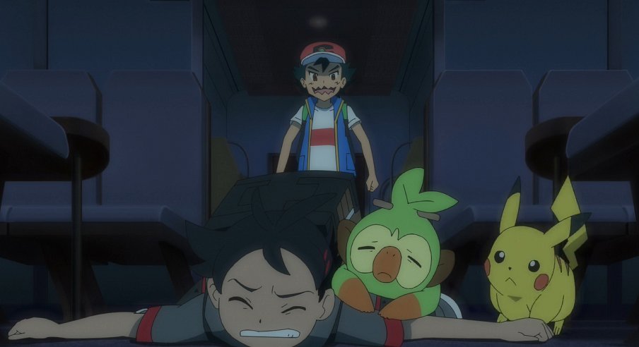 Ash und Goh sind mit dem Zug in der Galar-Region unterwegs. Um ihren Zielort Passbeck zu erreichen, müssen sie am Bahnhof von Score City den Zug wechseln. Sie verlassen, um umzusteigen, den Zug. Dabei rempelt Ash auf dem Bahnsteig beim Rückwärtslaufen versehentlich einen Jungen an, der eine merkwürdige Maske trägt (Anmerkung: Es handelt sich um Nio, den Arenaleiter von Passbeck). Ash entschuldigt sich bei ihm, doch der Junge geht ohne etwas zu sagen weiter. Als Ash bemerkt, dass der Junge beim Zusammenstoß sein Ticket auf dem Bahnsteig hat fallen lassen, möchte er ihn darauf aufmerksam machen und es ihm wiedergeben. Doch der Junge reagiert nicht auf Ashs Rufe und scheint fast schon davonzurennen. Ash und Goh folgen ihm durch den Bahnhofsuntergrund und stehen schließlich vor einer Tür, auf der eine große 0 steht und die zu einem im dichten Nebel gelegenen Gleis führt. Dort steht bereits ein Zug zur Abfahrt bereit. Ash und Goh können den Jungen nirgendwo finden. Als die Gleisdurchsage ankündigt, dass der sogenannte Geisterzug nach Passbeck fahre und nun starte, steigen Ash und Goh hastig in diesen ein, um so an ihr Reiseziel zu kommen. Gemeinsam mit den beiden fährt der Zug ab.