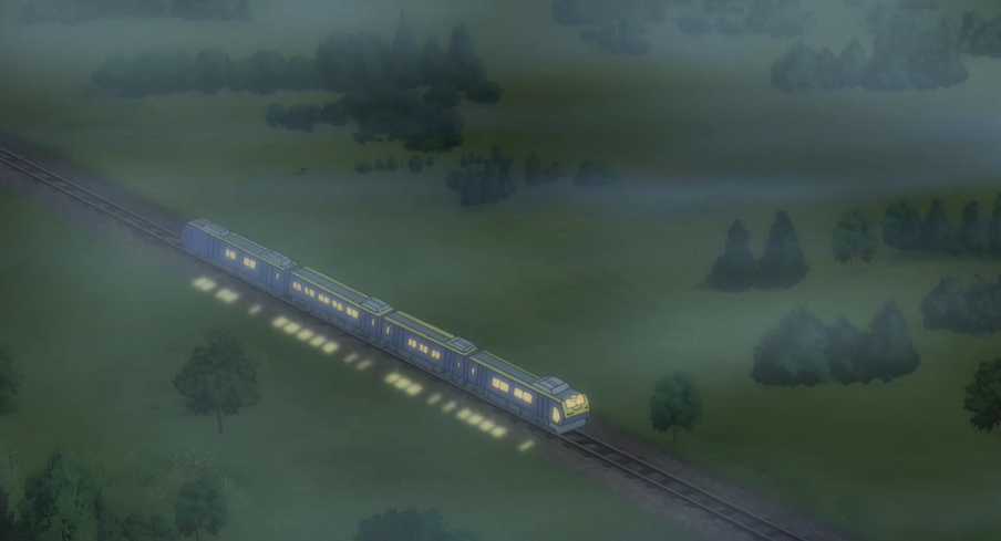 Etwas später hält der Zug auf einmal mitten auf seinem Weg durch die nebelige Natur. Mehrere Nebulak und Alpollo von einem nahegelegenen Friedhof tauchen auf und holen den Spritikern aus dem Zug. Der Junge erklärt, der Geisterzug würde Geist-Pokémon transportieren und Kryppuks Ziel sei dieser Friedhof. Als Goh nachfragt, ob der Zug noch etwas anderes außer Geist-Pokémon mitnehme, ergänzt der Junge, dass auch er vom Geisterzug transportiert werde.