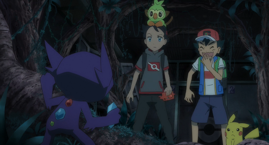 Gohs Absol und Kryppuk liefern sich einen harten Kampf. Jedoch findet Goh kein richtiges Mittel, um Kryppuk wirklich zu schaden. Gerade als Absol einem weiteren Spukball Kryppuks in der Luft nicht mehr ausweichen kann, taucht Ashs Gengar, den Geist in der Hand haltend, auf, das den Spukball abfängt und Absol mit seiner Psychokinese-Attacke in der Luft auffängt. Goh ist sehr froh, als er plötzlich Ash an seiner Seite bemerkt. Ash erklärt Goh, dass dieser ihm einen Moment verschaffen soll, in dem Kryppuk sich nicht bewegt, damit Gengar den Geist zurückbringen kann.