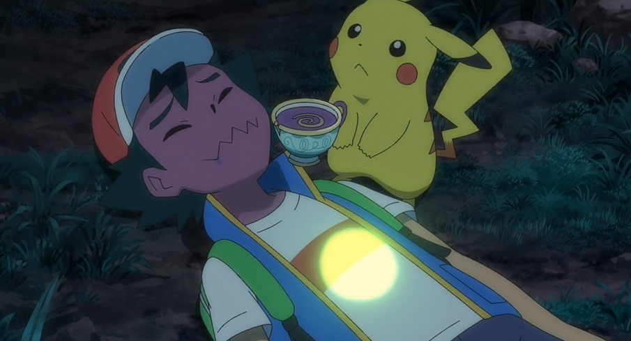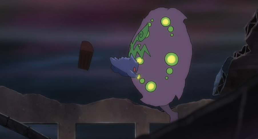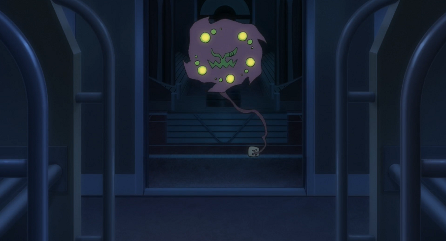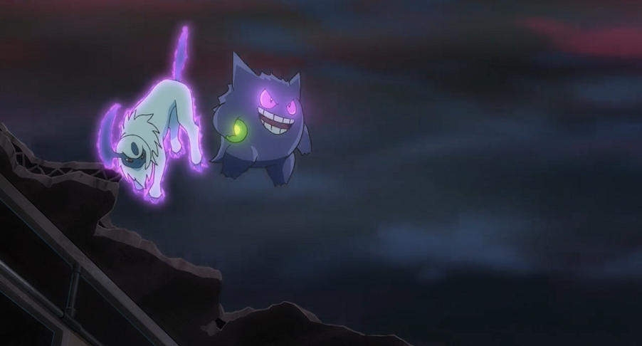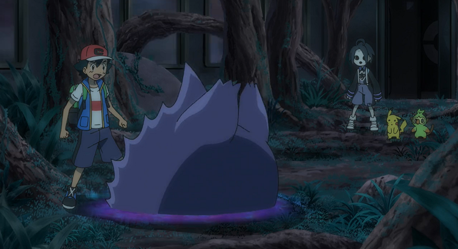 Ash hat sich wieder beruhigt, scheint aber noch immer von dem Geist kontrolliert zu werden. Der Junge jedoch gibt die Hoffnung nicht auf, dass sein Ansatz wirken könnte. Und tatsächlich: Kurz darauf verlässt das kugelrunde grünliche Licht Ashs Körper, woraufhin dieser wieder vollkommen normal wird. Der Geist schwirrt kurz durch die Luft und verschwindet schnell im Schatten von Ash. Der will sich das Spiel nicht bieten lassen und ruft Gengar aus dessen Pokéball, das schließlich ebenfalls in Ashs Schatten verschwindet und dort den Geist fangen kann. Der Junge weist sie an, den Geist sofort zu Kryppuk zu bringen.