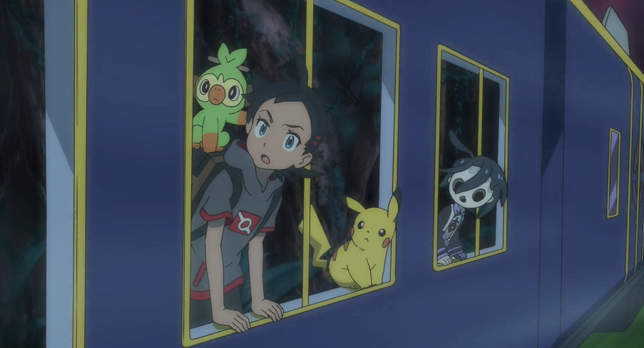 Als aus diesem Wagen hinter ihnen plötzlich ein Knall ertönt und die Scheiben zu Bruch gehen, schrecken Ash, Goh und der Junge auf. Sie blicken aus dem kaputten Fenster ihres Wagens nach hinten und können, da der Zug in dem Moment eine Kurve fährt, sehen, wie durch eine weitere Explosion das Dach eines hinteren Wagens aufbricht und aus diesem Kryppuk hervorschaut. Der Junge murmelt vor sich hin, dass Kryppuk aufgewacht sei. Er meint außerdem zu verstehen, dass das Pokémon einen seiner Geister zurück möchte. Mit Blick auf Ash erkennt er, dass dieser Geist, der zuvor Teil des Kryppuk gewesen sei, nun in Ash lebe. Goh wird nun klar, weshalb sich Ash so merkwürdig und unverschämt verhält. Pikachu versetzt ihm nochmals einen Donnerblitz, doch Ash lässt sich nicht aufhalten. Goh weist den Jungen an, zu versuchen, den Geist aus Ash herauszubekommen, während er selbst sich um Kryppuk kümmere und versuche es aufzuhalten. Im selben Moment beginnt der Zug erneut leicht zu ruckeln, wodurch der Teil eines Astes von einem der Bäume abbricht, Ash direkt auf den Kopf fällt und diesen so ausknockt.