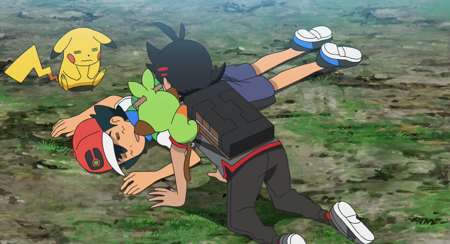 Nachdem sich alle sattgegessen haben, wandern die Kronen von Ashs und Gohs Köpfen wieder zu Galar-Laschoking und Laschoking zurück.