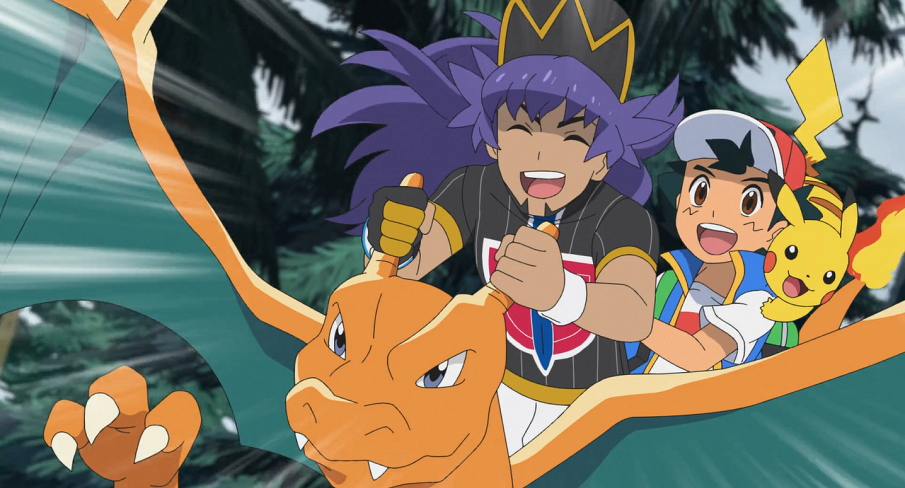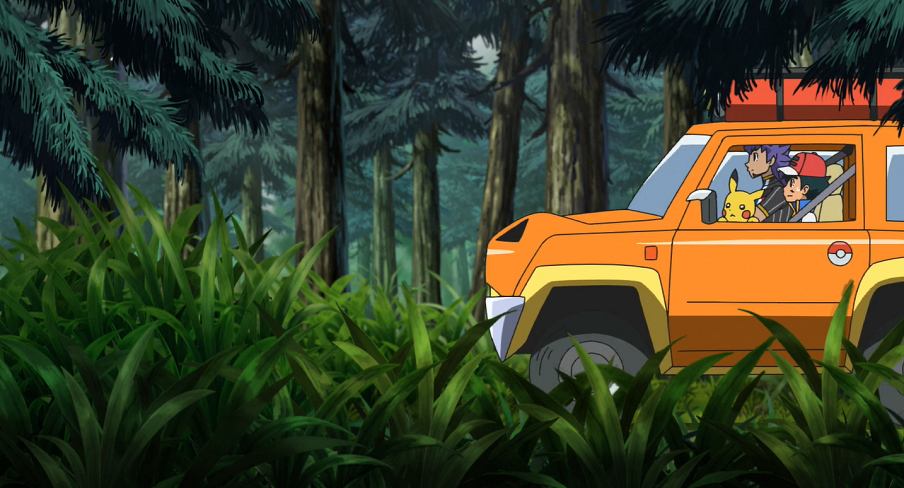 Bei ihrer Autofahrt erzählt Ash Delion, dass Goh dabei wäre, Pokémon zu fangen. Auf Ashs Frage, wohin Delion ihn zum Training mitnehme, erwidert dieser, dass sie zum Meer fahren würden. Als sie kurz darauf inmitten eines Waldes zum Stillstand kommen und Delion die Karte mustert, muss er seinem schlechten Orientierungssinn Rechnung tragen und verkündet gegenüber Ash, dass sie an diesem Tag doch in den Bergen trainieren würden. Er lässt sein Glurak aus dessen Pokéball und setzt sich, gemeinsam mit Ash und Pikachu, auf dessen Rücken. Anschließend steigen sie auf Glurak in die Luft und fliegen durch den Wald.