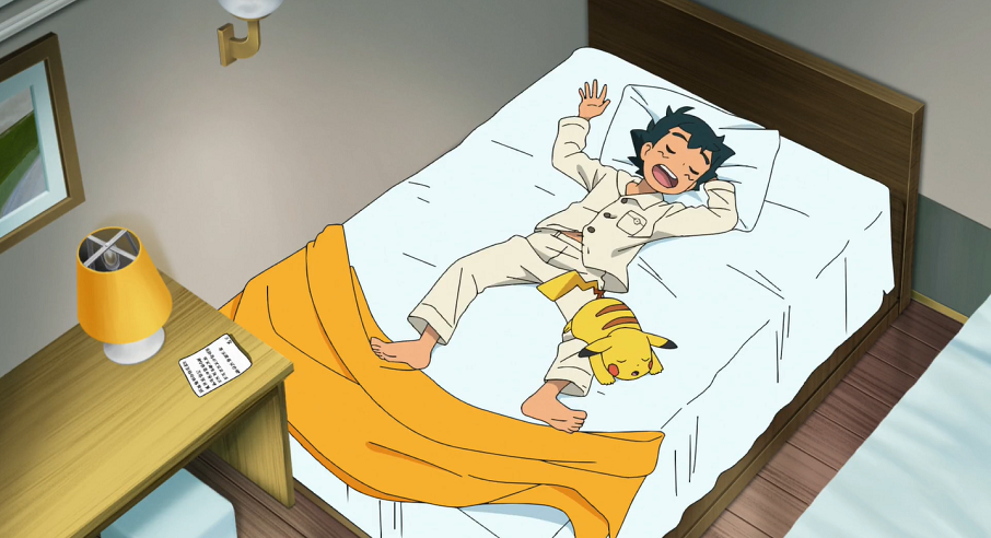 Nach Ashs Kampf gegen Mary haben Ash und Goh im Pokémon-Center von Score City übernachtet. Als Pikachu aufwacht und feststellt, dass Gohs Bett leer ist, weckt es schnell Ash. Dieser findet eine handgeschriebene Nachricht von Goh, in der dieser erklärt, dass er vergeblich versucht habe, Ash zu wecken und sich daher schon einmal zum Engine-Flussufer begeben habe, wo er auf ihn warte. Ash und Pikachu beeilen sich, um sich auf den Weg zu Goh zu machen.