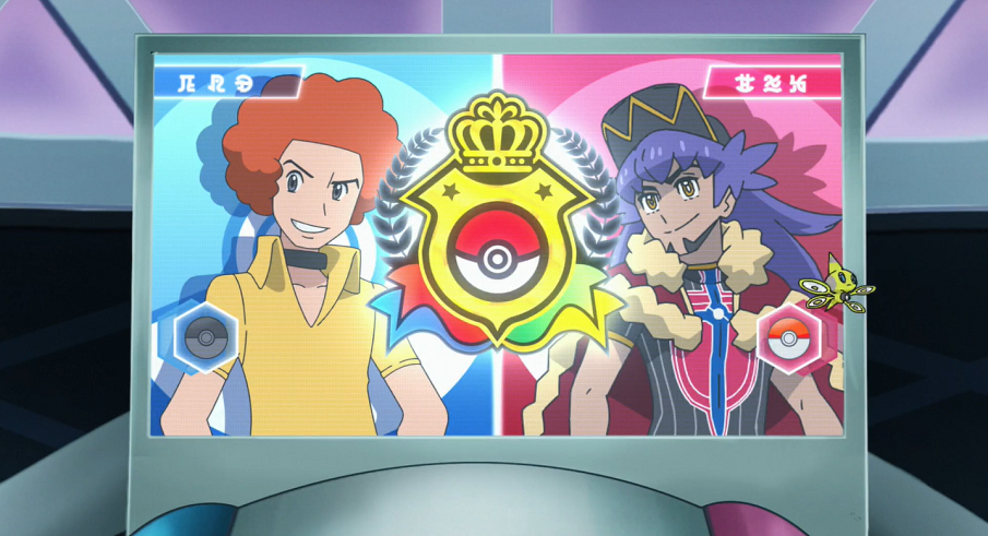 In der Lobby des Stadions angekommen möchte Ash so schnell wie möglich auf die Tribüne. Im Augenwinkel bemerkt er ein Fernsehgerät, auf dem der Kampf übertragen wird. Dort ist zu sehen, wie Ignaz, das Top-Vier-Mitglied aus der Sinnoh-Region, und dem Kommentator zufolge auf Platz 7 der Rangliste platziert, mit seinem Panferno gegen Delion und dessen Glurak kämpft.