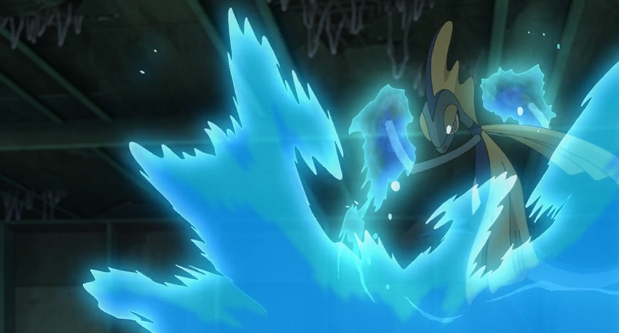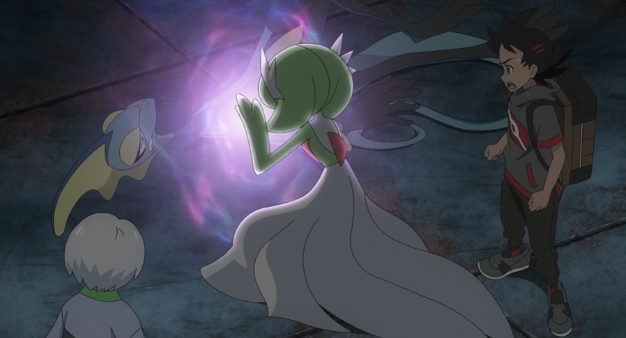 Während sich Hu um sein Guardevoir kümmert, weist Goh sein Intelleon an, sich im Wasser am Ende des Raumes zu verstecken. Hu ist traurig, dass er sich so hat reinlegen lassen und möchte sich bei Goh dafür entschuldigen. Doch Goh meint, er müsse sich keine Sorgen machen und werde mit den beiden schon fertig. Aus seinem Versteck im Wasser feuert Intelleon zwei Präzisionsschüsse ab, welche die gegnerischen Pokémon nur knapp verfehlen. Mit Ladungsstoß kann Donarion Intelleon jedoch wieder aus dem Wasser zwingen. Mit einem erneuten Ladungsstoß und sowie Nachthieb lassen Donarion und Kleoparda weitere Attacken folgen, denen Intelleon gerade so ausweichen kann. Anschließend versucht es sich unsichtbar zu machen, allerdings kann Donarion Intelleon mit Fadenschuss finden und fesseln. Guardevoir fühlt sich wieder bei Kräften und möchte Intelleon helfen, das im selben Momente eine Finsteraura-Attacke einstecken muss. Shunya* und Lyla* geben sich siegessicher und rechnen nicht mit Guardevoirs Konfustrahl, der ihre beiden Pokémon verwirrt. Mit einem Präzisionsschuss kann Intelleon, das sich vom Fadenschuss selbst befreit hat, zuerst Kleoparda und daran anschließend mit Aquadurchstoß das attackierende Donarion besiegen.