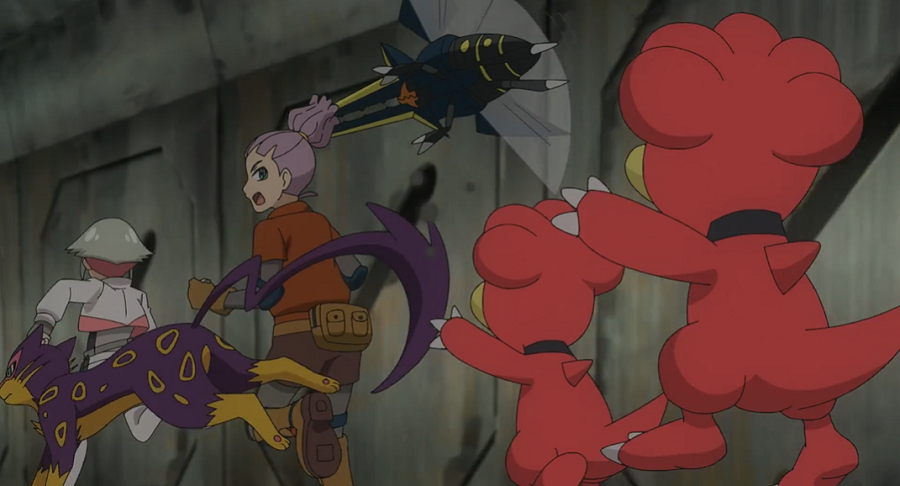 Goh und Hu sind mit Blick auf die Karte verwundert, dass sich die Anzahl der verbliebenen Herausforder:innen inzwischen sehr verkleinert hat. Allerdings sehen sie gleich darauf, wie die Gruppe von Papungha auf sie zu stürmt und dabei Schlafpuder einsetzt. Hu kann Goh gerade noch davon abbringen, einzuschlafen. Doch als nächstes kommen bereits die Smogon auf sie zugerast. Vor diesen und den zurückkehrenden Papungha beginnen sie zu fliehen.
