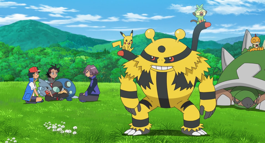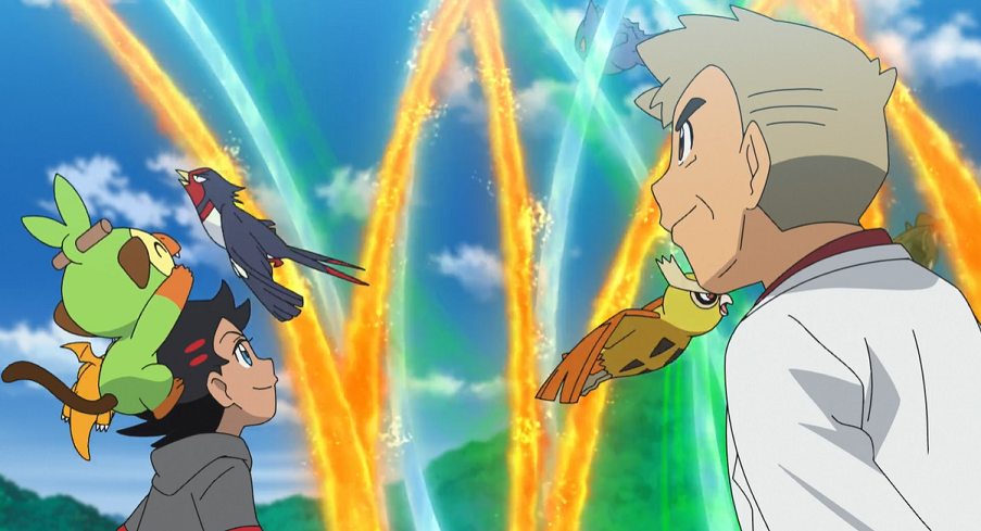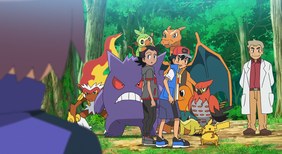 Ashs Glurak schlägt Gengar vor, dass es mit ihm und den anderen Feuer-Pokémon trainieren könne. Gengar ist begeistert und macht sich mit der Gruppe auf den Weg. Ash möchte ihnen folgen, doch Paul schlägt ihm vor, seine Pokémon unter sich und allein trainieren zu lassen. Professor Eich, der den Pokémon bereits folgt, ruft Ash noch zu, dass er ein Auge auf sie haben werde, damit Ash und Paul sich in Ruhe austauschen können. So ist nur noch Panferno bei Ash, das Paul ebenfalls wegschickt. Goh ist erstaunt, dass Panferno auf Paul hört. Ash klärt ihn darüber auf, dass es ursprünglich zu Paul gehört habe. Während die drei sich austauschen, beginnen Pikachu und Chimpep mit Elevoltek zu spielen.