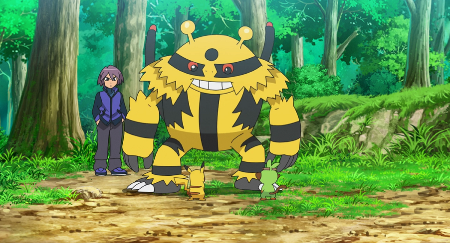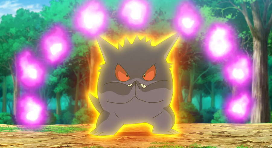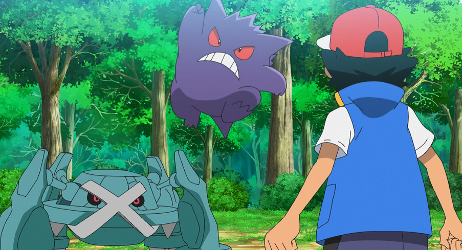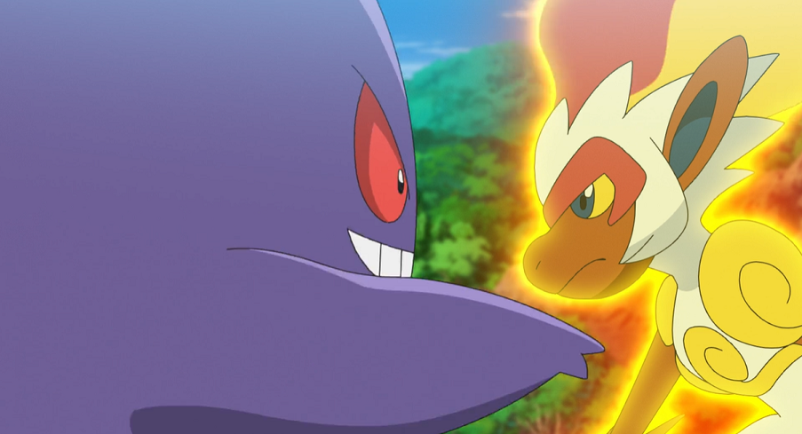 Als Ashs Gengar sich den Feuer-Pokémon um Ashs Panferno nähert und dieses berührt, erschrickt es vor lauter Hitze, steigt in die Luft auf und landet schließlich in einem nahegelegenen Wald. Dort wird es beim Fallen auch noch von der Elektro-Attacke eines Elevoltek getroffen.