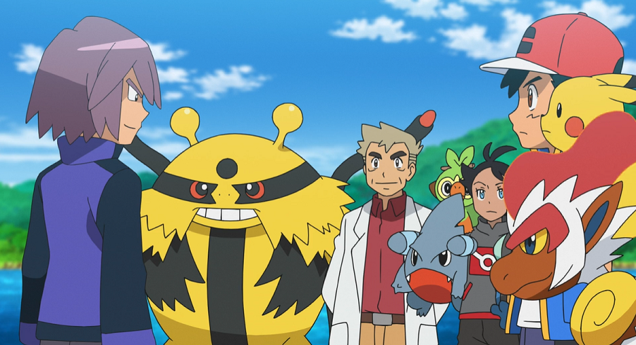 Ash und Goh sind Gengar in den Wald gefolgt und bemerken das Elevoltek. Hinter diesem taucht dessen Trainer auf, den Ash als seinen alten Rivalen Paul aus der Sinnoh-Region ausmacht. Nachdem Gengar recht schnell wieder abgekühlt ist, erzählt Ash Goh über Paul und ihre gemeinsame Vergangenheit. Auch Professor Eich und Ashs Feuer-Pokémon stoßen nun hinzu und erkundigen sich nach ihnen. Ashs Panferno, das als Panflam ehemals zu Paul gehört hat, ehe dieser es freigelassen und Ash es in sein Team aufgenommen hat, schaut angespannt, als es Paul bemerkt. Ash erzählt Professor Eich von Paul, doch dieser weiß bereits Bescheid. Er habe Ash mit Pauls Besuch überraschen wollen, Paul sei am Vortag plötzlich in seinem Labor aufgetaucht. Paul erklärt, dass Professor Eich ein führender Forscher sei. Da er so viel wie möglich über Pokémon lernen wolle, habe er ihn aufgesucht.