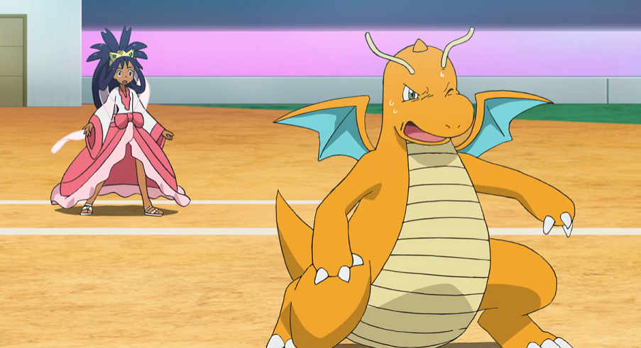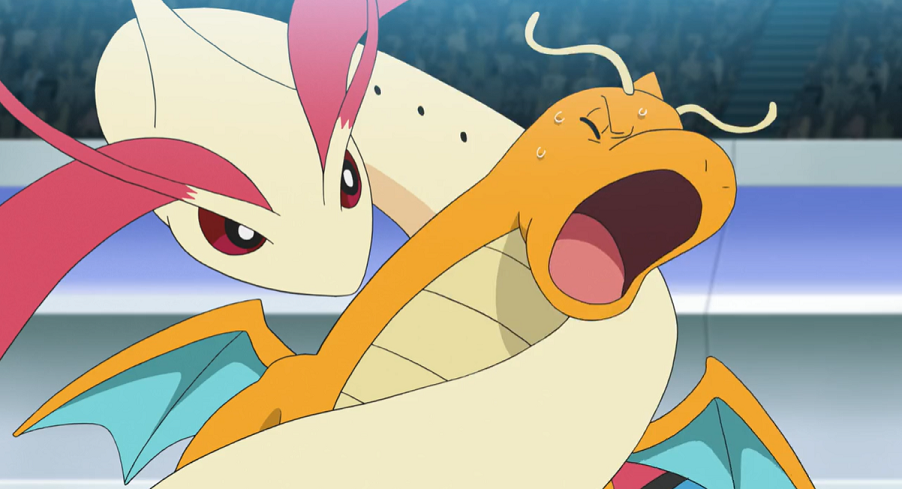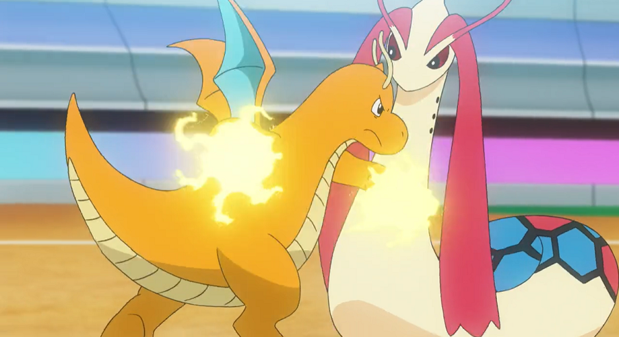 Lilia entscheidet sich für Dragoran als zweites Pokémon. Das Drachen-Pokémon kann durch sehr effektive Donnerschläge Milotic ordentlich zusetzen. Zu Lilias Erstaunen antwortet Milotic jedoch mit der Feen-Attacke Säuselstimme, die Dragoran wiederum sehr zu schaffen macht. Milotic umschlingt das geschwächte Dragoran und verpasst ihm einen gewaltigen Stoß mit Eisenschädel, der das Drachen-Pokémon besiegt.