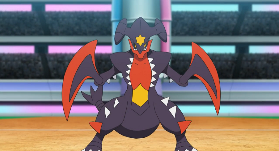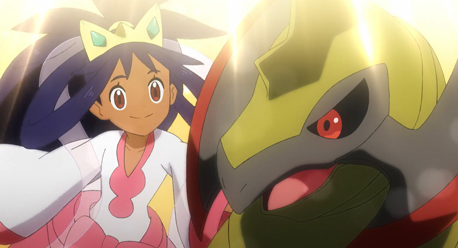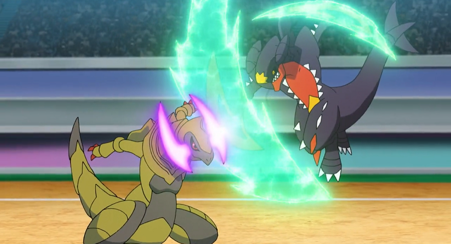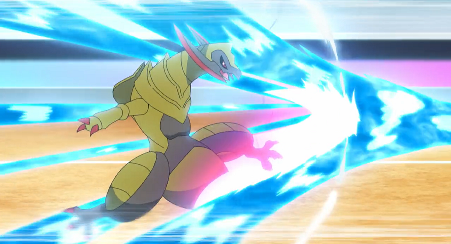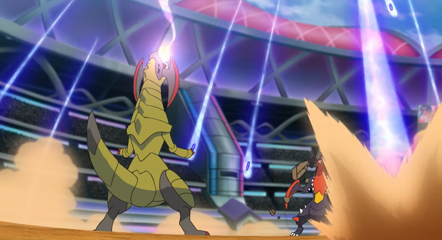 Cynthia sieht nun den richtigen Zeitpunkt gekommen und zückt ihren Lippenstift, in dem ein Schlüssel-Stein eingearbeitet ist. Mit diesem mega-entwickelt sie ihr Knakrack, was auch bei Ash, Goh und Hopp, bei Team Rocket sowie bei den anderen Teilnehmenden im Innenraum Erstaunen auslöst.