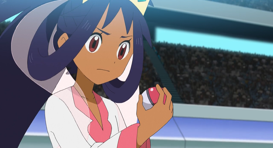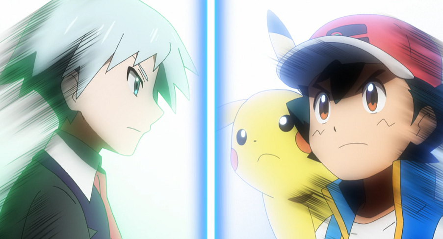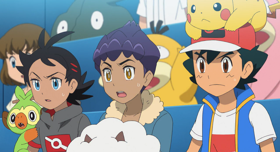 Ash, der den Kampf mit Goh und Hop auf der Tribüne folgt, ist schon sehr gespannt und drückt seiner ehemaligen Wegbegleiterin Lilia gemeinsam mit Pikachu die Daumen. Goh klärt Hop sowohl über die Tatsache auf, dass Ash gemeinsam mit Iris durch die Einall-Region gereist ist, als auch darüber, dass er mit Cynthia gut bekannt ist.