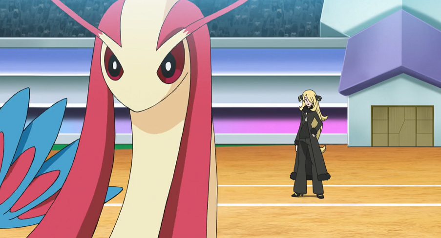 Cynthia schickt als nächstes Pokémon Milotic in den Kampf. Stalobor greift sofort mit Schlagbohrer an, allerdings kann Milotic der Attacke problemlos ausweichen und im Gegenzug mit einer geschickten Hydropumpe kontern und Stalobor damit ohne Umschweife besiegen.