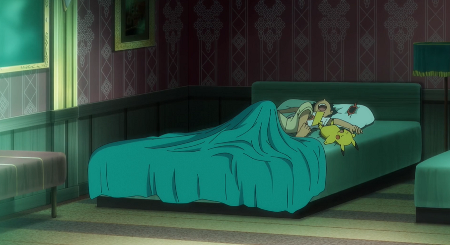 Ash und Goh übernachten in Score City im Hotel La Rose Ronde. Am Morgen wird Ash von seinem Wecker aus dem Tiefschlaf gerissen und stellt fest, dass Goh die ganze Nacht über damit beschäftigt gewesen ist, vom Projekt Mew erhaltene Bilder und Daten auszuwerten, um so vorbereitet zu sein, sobald die nächste Mission ansteht. Ash feuert Goh an, irgendwann Mew zu finden. Dieser wiederum drückt Ash für das anstehende Halbfinale die Daumen.