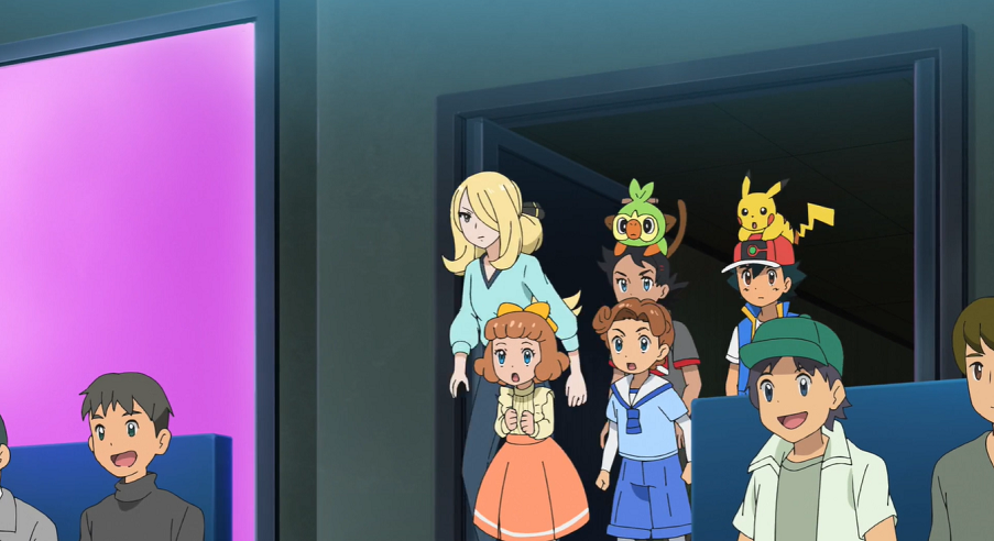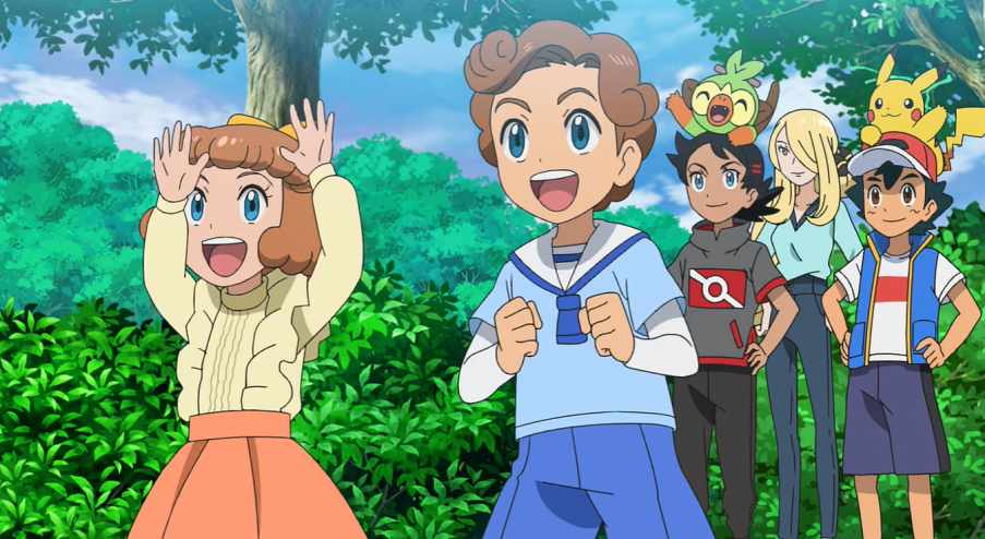 Auf einmal tauchen ein Junge sowie ein Mädchen auf, die sich sehr beeindruckt von den zahlreichen Pokémon zeigen. Das Mädchen freut sich sehr, als es Ashs Pikachu und Dragoran streicheln darf. Der Junge stellt sich und seine kleine Schwester als Vic* und Toria* vor. Vic* erkennt Ash und Cynthia als Teilnehmende des Abschlussturniers wieder und erklärt, ihre Kämpfe verfolgt zu haben. Zwar sei er Fan von Delion, doch Ashs Pikachu und dessen Z-Attacke haben ihn ebenfalls sehr beeindruckt. Er plane, ein Chimpep als erstes Pokémon zu fangen, dass er später wie bei Delion zu einem Gortrom entwickeln wollte, das die Gigadynamaximierung einsetzen könne. So kommt Vic* zu der Frage an Cynthia nach deren erstem Pokémon. Cynthia erzählt, dass ihr Knakrack auch ihr erstes Pokémon gewesen sei, das sie damals aus einem Ei erhalten habe. Sie sei damals sehr aufgeregt gewesen, was aus dem Ei schlüpfe und habe sich gut um dieses gekümmert, bis schließlich Kaumalat geschlüpft sei. Ash ergänzt, dass er sein Lucario ebenfalls aus einem Ei erhalten habe. Dieses Ei sei trotz vieler Bemühungen erst geschlüpft, als Ash es erhalten habe. Cynthia vermutet, es sei Schicksal gewesen, dass Ash und Lucario zusammengefunden hätten.