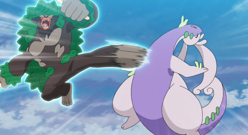 Viscogon versucht Gortrom mit Feuersturm zu besiegen, doch Delions Pokémon kann die sehr effektive Attacke auf wundersame Weise unbeschadet mit Hilfe seines Trommelns überstehen und kontert daraufhin mit Akrobatik, wodurch es auch Viscogon besiegt.
