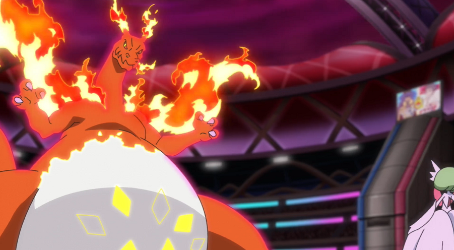 Delion schickt Glurak in den Kampf. Diantha führt bei Guardevoir die Mega-Entwicklung aus, worauf Delion mit der Gigadynamaximierung von Glurak reagiert. Guardevoir setzt Gigadynamax-Glurak mit Donnerblitz unter Druck und schüttelt dieses kurz durch. Delions Pokémon antwortet mit Giga-Feuerflug, wodurch ein Feuervogel entsteht, der Mega-Guardevoir in einem gewaltigen Feuertornado gefangen nimmt. Mega-Guardevoir kann den Flammenvogel jedoch mit Psychokinese kontrollieren und steuert ihn auf Gigadynamax-Glurak zu. Dieses versucht ihn mit Dyna-Düse abzuwehren, doch schließlich nimmt der Flammenvogel auch die Kraft von Dyna-Düse in sich auf. Delion lässt Gigadynamax-Glurak mit einem erneuten, noch stärkeren Giga-Feuerflug antworten. Dieser zerstört nicht nur den von Mega-Guardevoir kontrollierten Flammenvogel, sondern trifft auch Mega-Guardevoir, wodurch dieses besiegt wird.