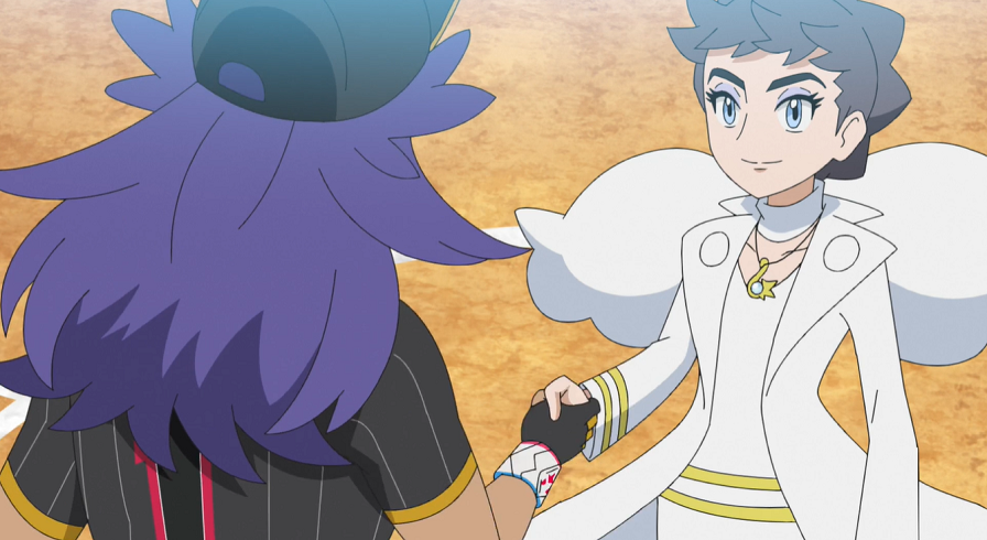 Auf der Tribüne sind auch die bei Ash, Cynthia und Goh stehenden Toria* und Vic* begeistert. Vic* erklärt, dass er ebenfalls einmal so coole Kämpfe wie Delion bestreiten möchte. Cynthia erwidert, dass er dafür viele Abenteuer erleben, viele Pokémon fangen und viele Kämpfe bestreiten müsse, um so weit zu kommen. Ash sagt den beiden zu, gegen sie anzutreten, sobald sie einmal Pokémon haben.
