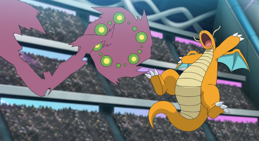 Ashs Pokémon will sofort mit Draco Meteor loslegen, doch Kryppuk kann zuvor Tiefschlag einsetzen, Dragoran treffen und die Attacke so unterbinden. Dragoran steht wieder auf und macht sich daran, seine Attacke erneut auszuführen, was diesmal gelingt. Allerdings übersteht Kryppuk diese zu Ashs großem Erstaunen unbeschadet, indem es seinen Wirbel zur Abwehr nutzt. Mit Drachenklaue versucht Dragoran als Nächstes, Kryppuk Schaden zuzufügen, doch Cynthias Pokémon kontert mit Hypnose und versetzt Dragoran so in Schlaf. Kryppuk nutzt Dragorans Auszeit, um ihm mit Traumfresser immer wieder Schaden zuzufügen. Ash und Pikachu bemühen sich verzweifelt, das immer schwächer werdende Dragoran aufzuwecken, doch vergeblich: Dragoran geht K.O.