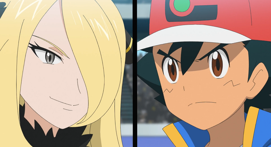 Nacheinander betreten zuerst Ash und dann Cynthia unter dem Jubel der Zuschauenden das Kampffeld und werden dabei vom Stadionsprecher nochmals vorgestellt. Delion und Diantha verfolgen das Halbfinale mit Spannung im Aufenthaltsraum der Teilnehmenden.