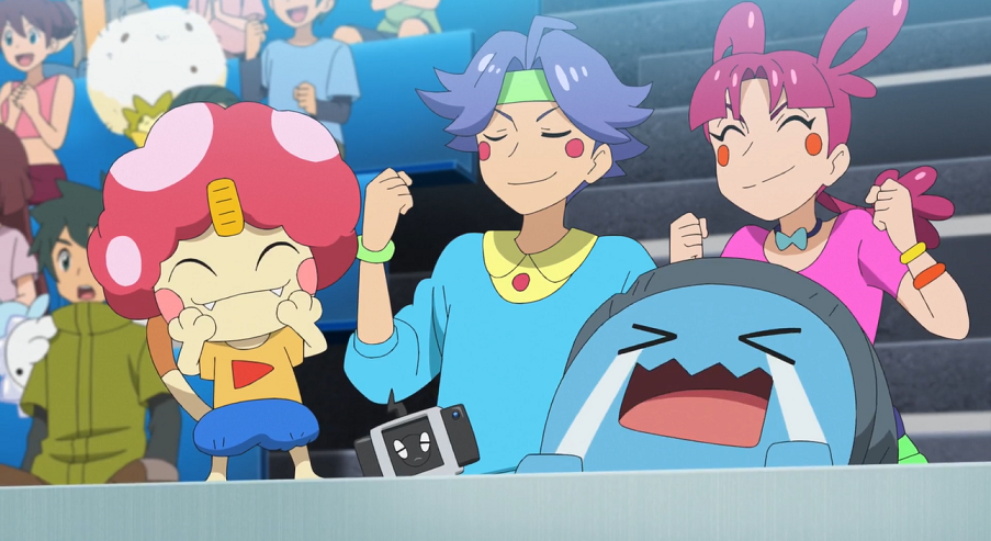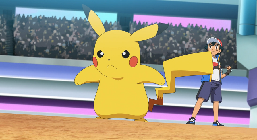 Goh, Hop und Chimpep freuen sich auf der Tribüne genauso über Ashs Comeback wie auch Team Rocket, das sich dafür rühmt, Pikachu gut trainiert zu haben. Auch in der Ferne schöpfen Professor Eich, Ashs Mutter sowie seine Pokémon vor dem Fernseher neue Hoffnung.