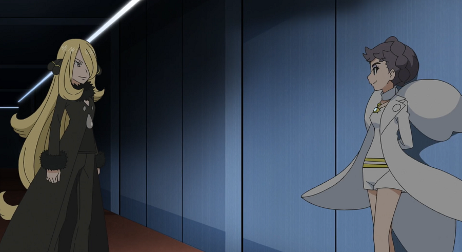 Auf der anderen Seite trifft Cynthia auf dem Weg zum Kampffeld auf Diantha, die ihr wiederum unterstützende Worte zukommen lässt. Sie ist davon überzeugt, dass Cynthia diejenige sei, welche Delions Siegesserie beenden könne. Cynthia verkündet Diantha gegenüber, dass sie plane, nach dem Turnier mit Pokémon-Kämpfen aufzuhören.